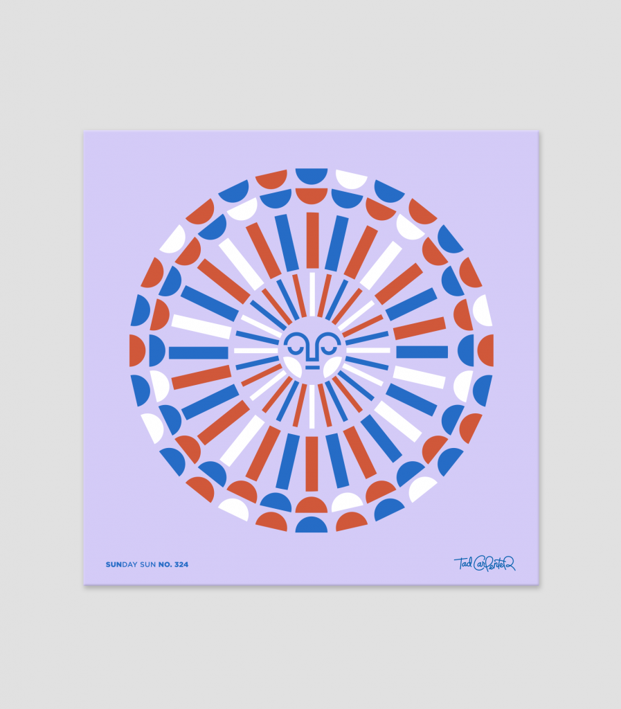 This print is a selected sun from Tad Carpenter’s Sunday Suns series. Sunday Suns is a project started by Tad in 2015, in which he creates a new sun every Sunday.